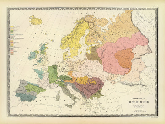Johnston's map of Europe is a valuable resource for historians, cartographers, and anyone interested in the ethnic and tribal diversity of the continent. It is also a beautiful and unique piece of art that would make a stunning addition to any home or office.