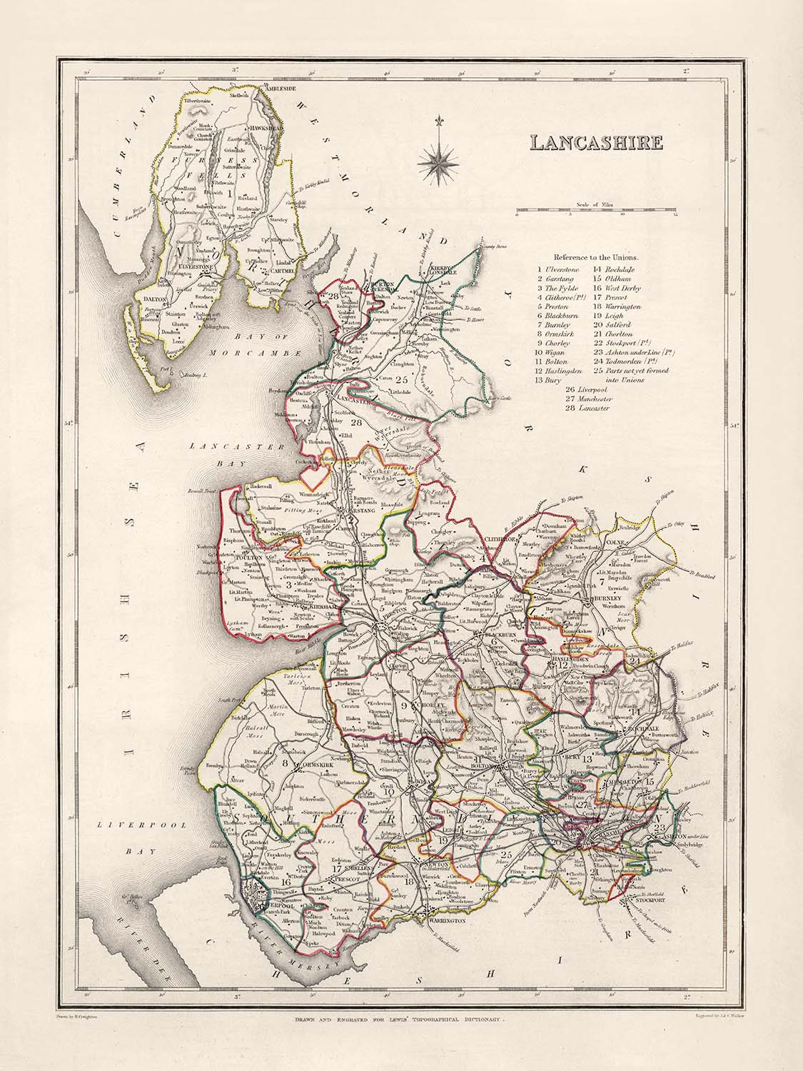 - 1844: The year of our map's creation. At this time, Lancashire was witnessing the zenith of the Industrial Revolution.