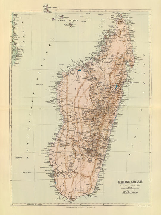 Edward Stanford was a renowned British cartographer and publisher who produced some of the most accurate and detailed maps of the late 19th and early 20th centuries. This map of Madagascar was published in 1901, just a few years after the French colony of Madagascar was established.
