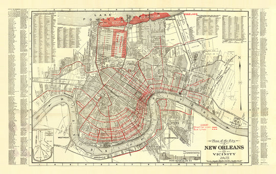 Old Map of New Orleans by Guilot & Adam, 1925: French Quarter, Treme, Algiers, Metairie, and City Park