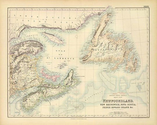 Old Map of Newfoundland, Nova Scotia & New Brunswick, 1872 by Fullarton: Canada, Colonial British North America