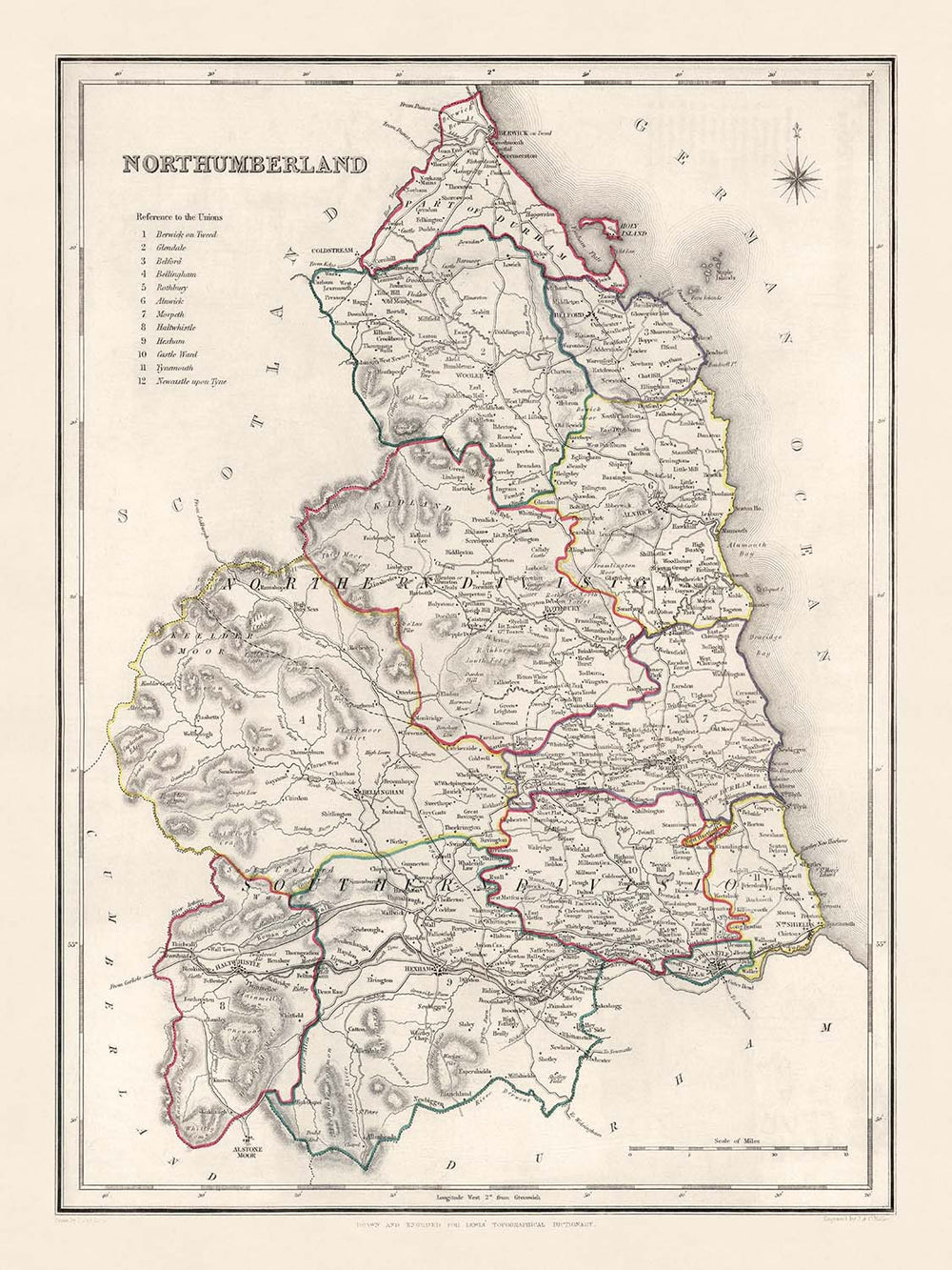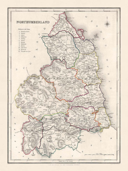 - 1844: The year this map was created, marking a period of significant geographic change and development in Northumberland.