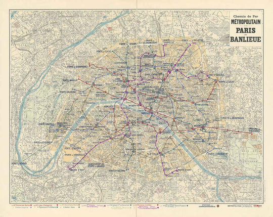 This wonderful old map of Paris and the Paris Métro was originally published in 1934. It was created by Gaillac-Monrocq.