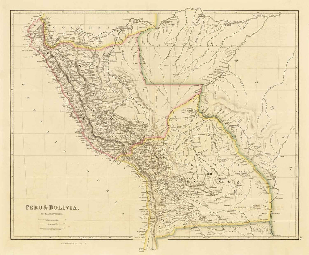 A gorgeous map of Peru and Bolivia, originally published in 1842 by probably the most sought after mapmaker of the mid-19th century, John Arrowsmith.