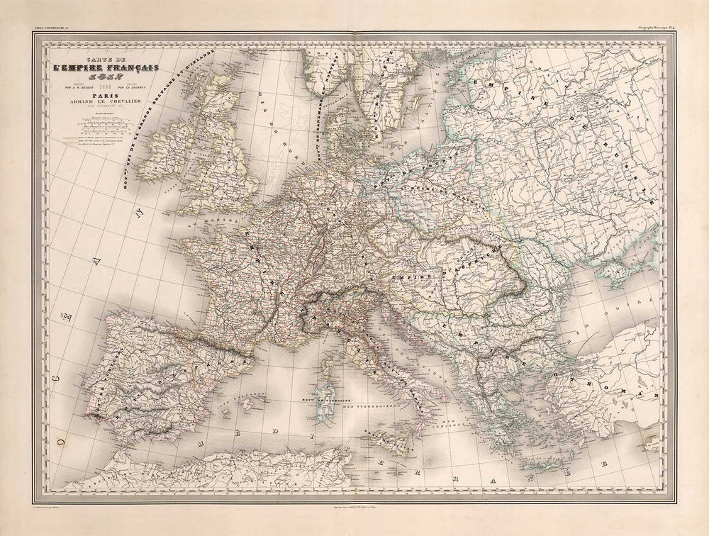 Old Map of the Napoleonic First French Empire by Charles Dyonnet in 1864: Historic European Chart