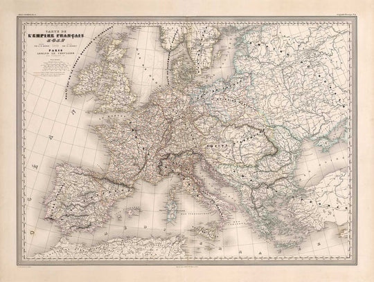 Immerse yourself in the grandeur of the 19th century with this captivating depiction of the French Empire. Crafted by the skilled cartographer Charles Dyonnet in 1864, this historical piece serves as a window into a time when Napoleon's influence was far-reaching and the geopolitical landscape of Europe was vastly different. The map, with its intricate details and precise renderings, is not only a geographical tool but also a testament to the artistry of its era.