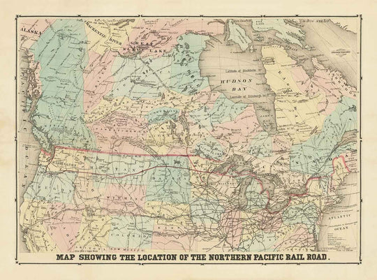 An incredibly rare and unusual map of the USA and Canada, focusing on the Northern Pacific Railway from Minnesota to the Pacific North West. The map was originally issued around 1870 to drum up investors to fund the construction of the railroad.