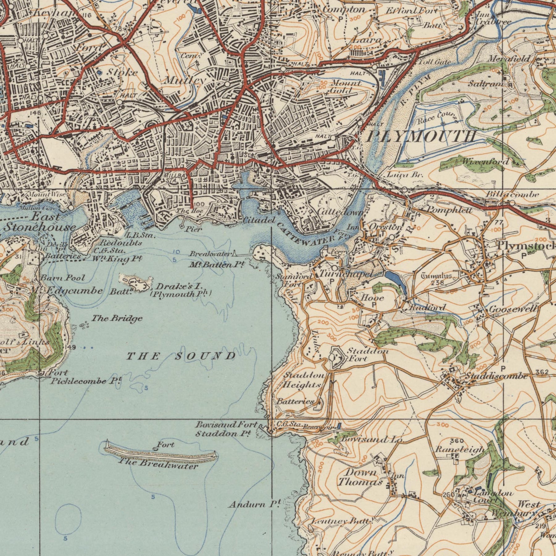 • Plymouth Sound: A tidal water body used as a shelter for ships against storms.
