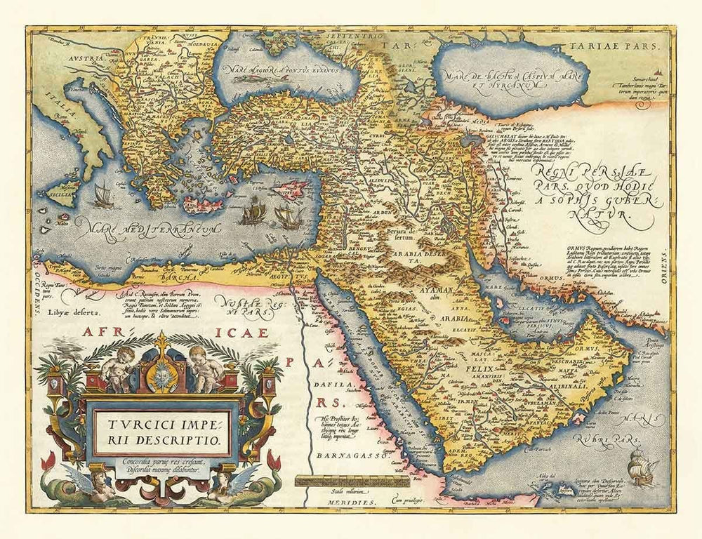 Old Ottoman Empire Map, 1584 by Ortelius: Turkey, Saudi Arabia, Middle East, Iran, Israel, Greece, Red Sea, Africa