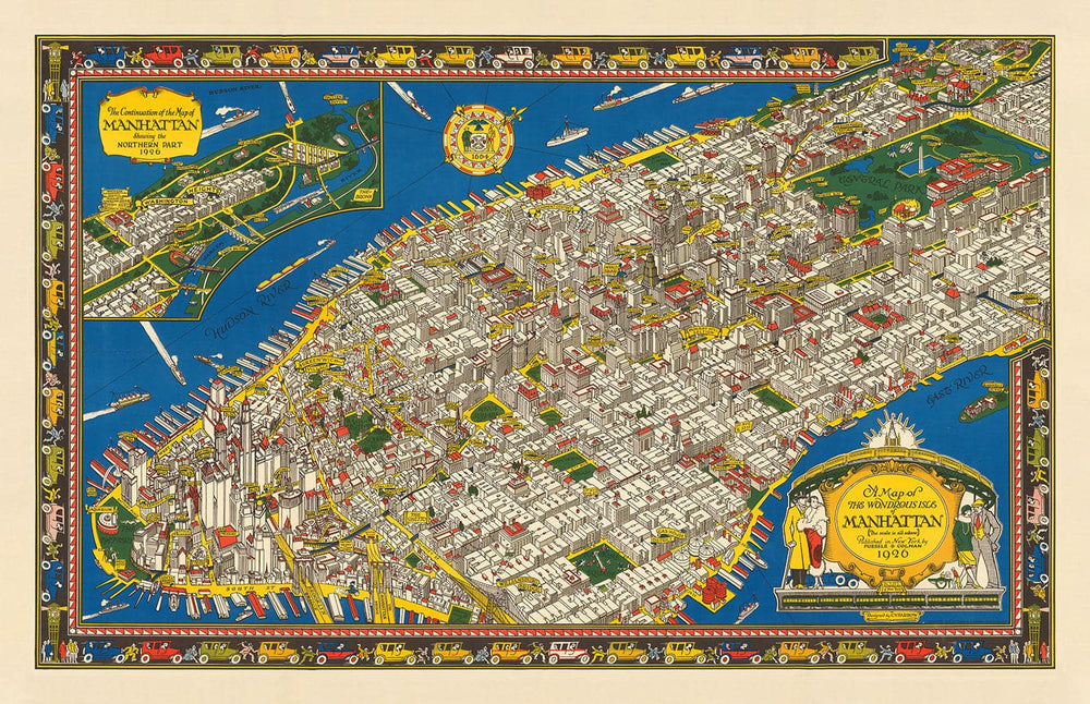 Most of Manhattan's modern features are already present in this antique map. Take a look at Downtown, dominated by the New York Telephone Building, Singer Building and Woolworth Building.