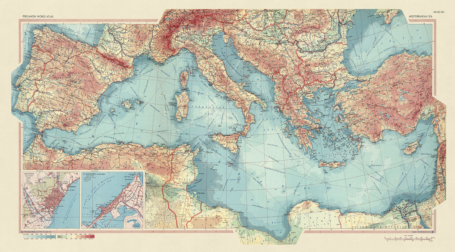 - Detailed political and physical map, offering a comprehensive view of the Mediterranean region.