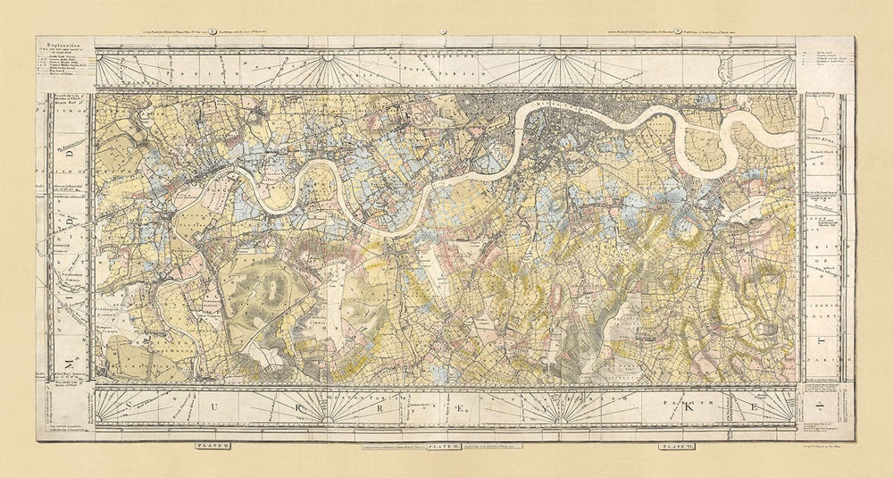 This is a highly decorative and extremely rare old map of London from 1799 by Thomas Milne. It is presented here in the original handcoloured form. This map has been lovingly restored by The Unique Maps Co. at its workshop in London, but it still looks delightfully old and characterful.