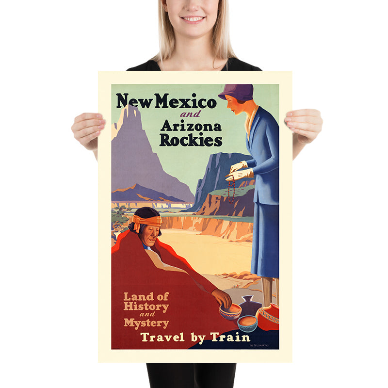 New Mexico and Arizona Travel Poster: Land of History and Mystery by The Willmarths, 1925