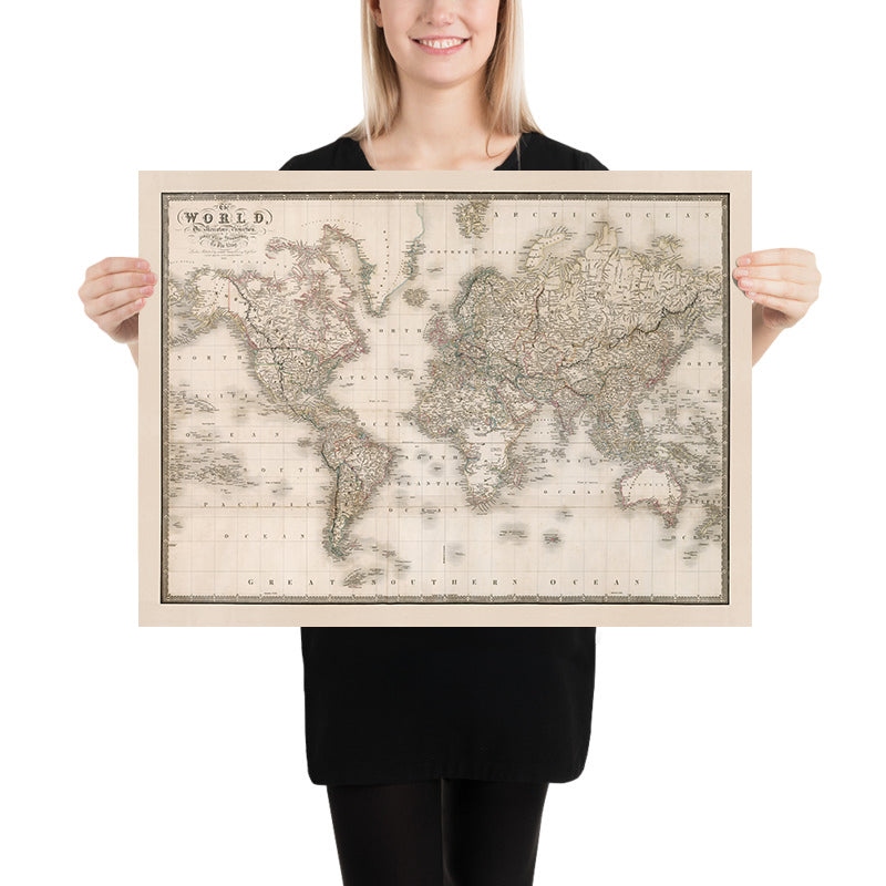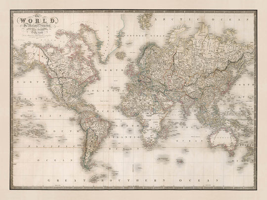 Old Map of the World by Wyld, 1837: Mercator Projection, Nautical Grid