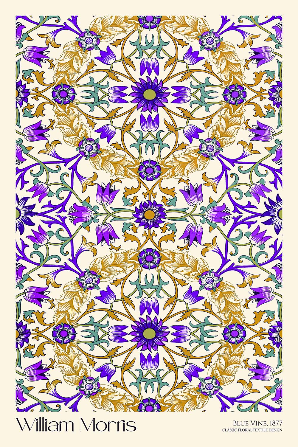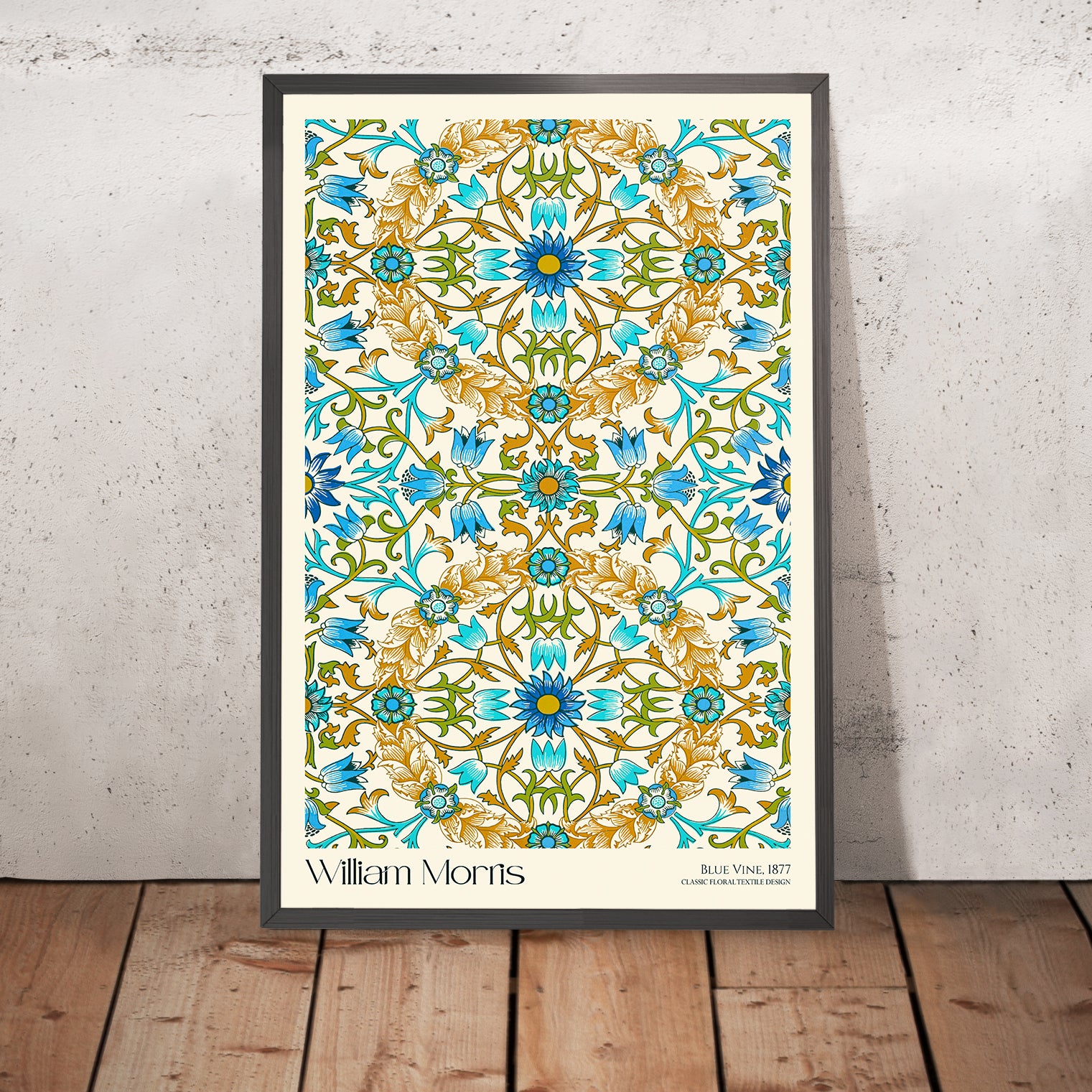 If you wish, we can include the artist’s name and the pattern title—“William Morris · Blue Vine”—tastefully placed above or below the artwork. It’s a simple way to personalize the piece, anchor a gallery wall, or create a curatorial feel in your space.