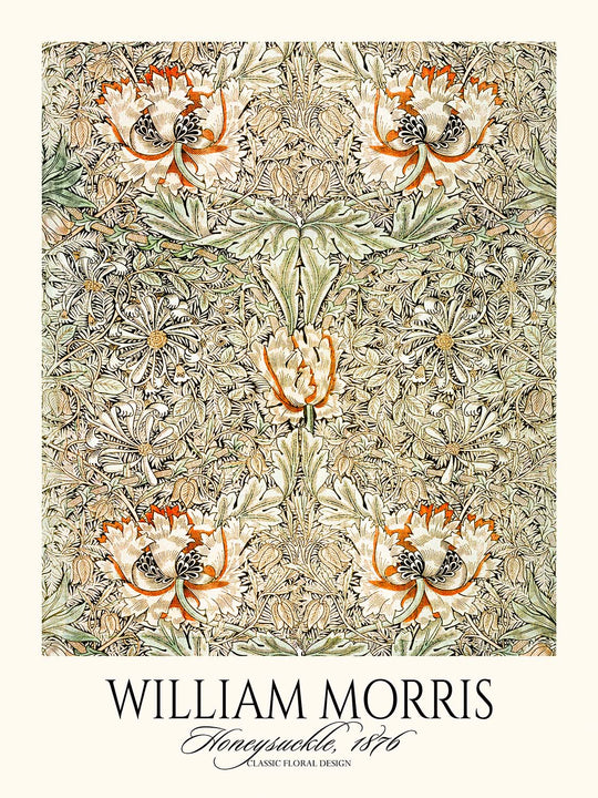 If you enjoy typographic details, we can include the artist’s name and pattern title—“William Morris, Honeysuckle”—tastefully placed above or below the artwork. This can add a curatorial flourish, unify a gallery wall, or help tell a visual story alongside other Arts & Crafts prints.