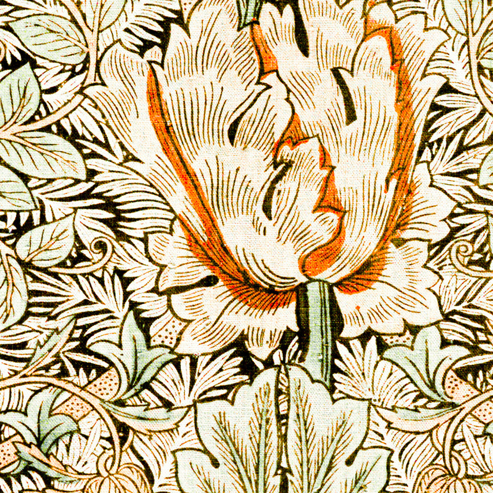 Honeysuckle by William Morris (1876) is a classic pattern of the Arts & Crafts movement, celebrating the beauty of nature through meticulous craft. This restored design distills Morris’s philosophy—bringing art into everyday life—into a richly layered arrangement of climbing honeysuckle, paired leaves, and lissome tendrils that flow across the surface in a graceful, repeating cadence. Most likely conceived as a wallpaper, Honeysuckle was the kind of motif that could also translate effortlessly to carpet, curtain, or other textile applications, making it as versatile today as it was in the late nineteenth century.