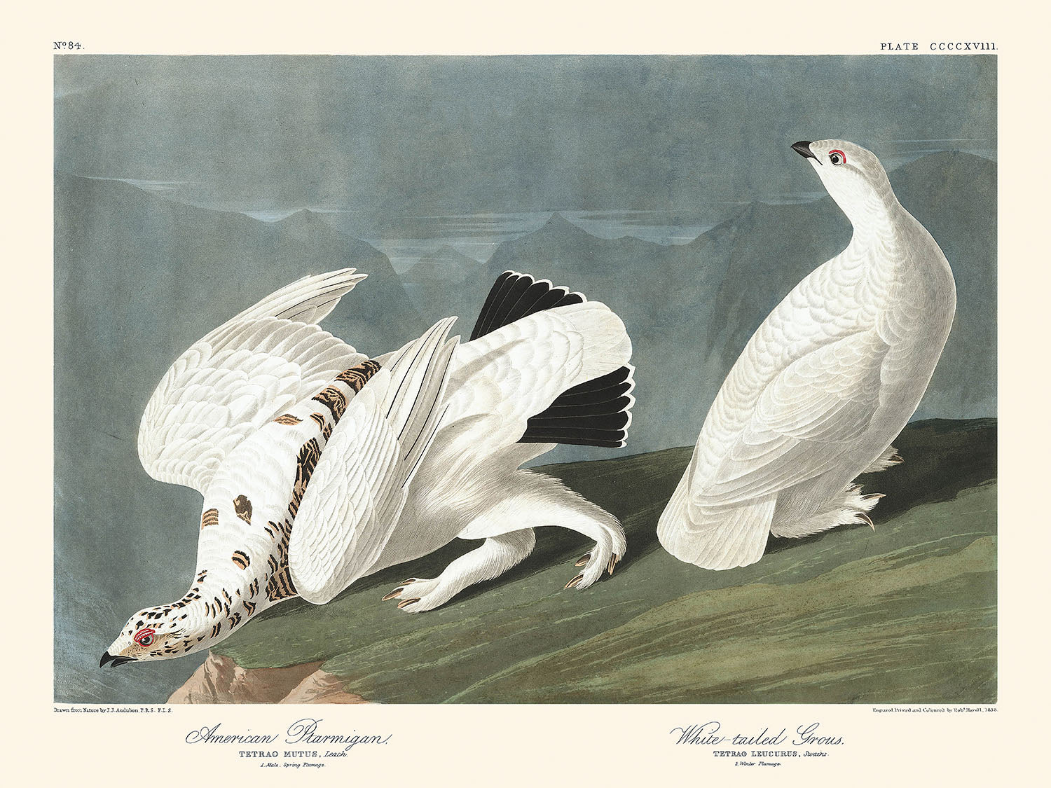 Amerikanischer Schneehuhn und Weißschwanz-Hühner von John James Audubon, 1827