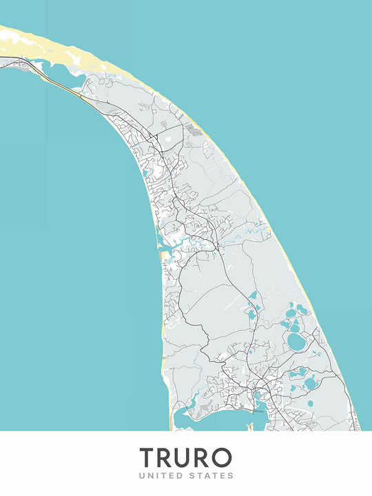 Diese Truro-Karte ist eine moderne, detaillierte Straßenkarte mit einzigartiger Kartografie und minimalistischem Design. Die Karte konzentriert sich auf die Stadt Truro in Massachusetts und die umliegenden Gebiete und bietet eine genaue und optisch ansprechende Darstellung des Stadtgrundrisses. Die Karte deckt einen erheblichen Teil der Stadt ab, einschließlich des Stadtzentrums, Wohnvierteln, Gewerbegebieten und Naturmerkmalen. Es erstreckt sich auch über die Stadtgrenzen hinaus und umfasst benachbarte Städte und Sehenswürdigkeiten.