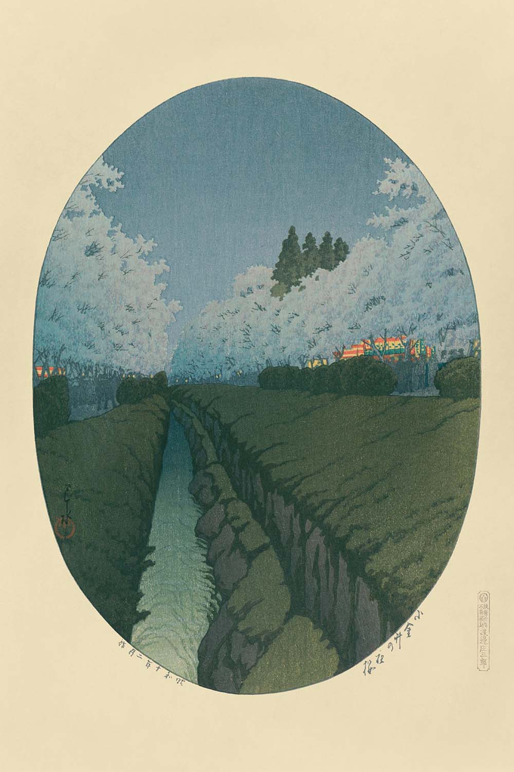 Nachtansicht der Kirschblüten in Koganei von Hasui Kawase 1935