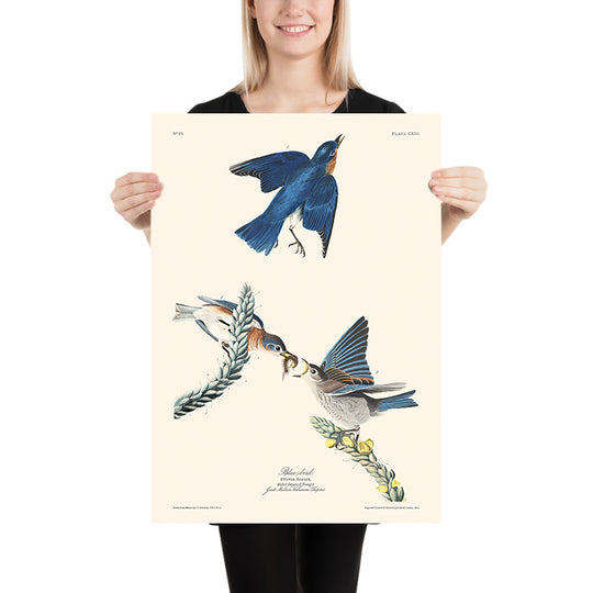 Blaumeise (Tafel 113), erstmals 1827 veröffentlicht, ist eine atemberaubende Vogelillustration aus John James Audubons renommierter Serie Die Vögel Amerikas. Diese Illustration fängt den prächtigen Blaumeisen in exquisitem Detail ein und zeigt seine lebendigen Farben und fesselnde Präsenz.