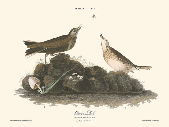 "Brauner Lärche (Tafel 10)," erstmals 1827 veröffentlicht, ist eine fesselnde Illustration aus John James Audubons wegweisendem Werk, Die Vögel Amerikas. Mit seinen präzisen Details und der realistischen Darstellung fängt dieses Stück meisterhaft die Eleganz und subtile Schönheit des Lärchens ein.