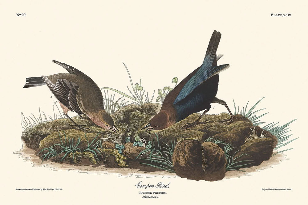 Der Cow-pen Bird, bekannt für seine fesselnde Darstellung durch John James Audubon, wurde erstmals 1827 als Teil seiner ikonischen Serie „The Birds of America“ veröffentlicht. Audubon, der für seine akribische Liebe zum Detail und seine lebendige Darstellung des Vogellebens bekannt ist, bringt den rätselhaften Cow-pen Bird in dieser exquisiten Illustration zum Vorschein und fängt sein einzigartiges Verhalten und seine subtilen Feinheiten ein.