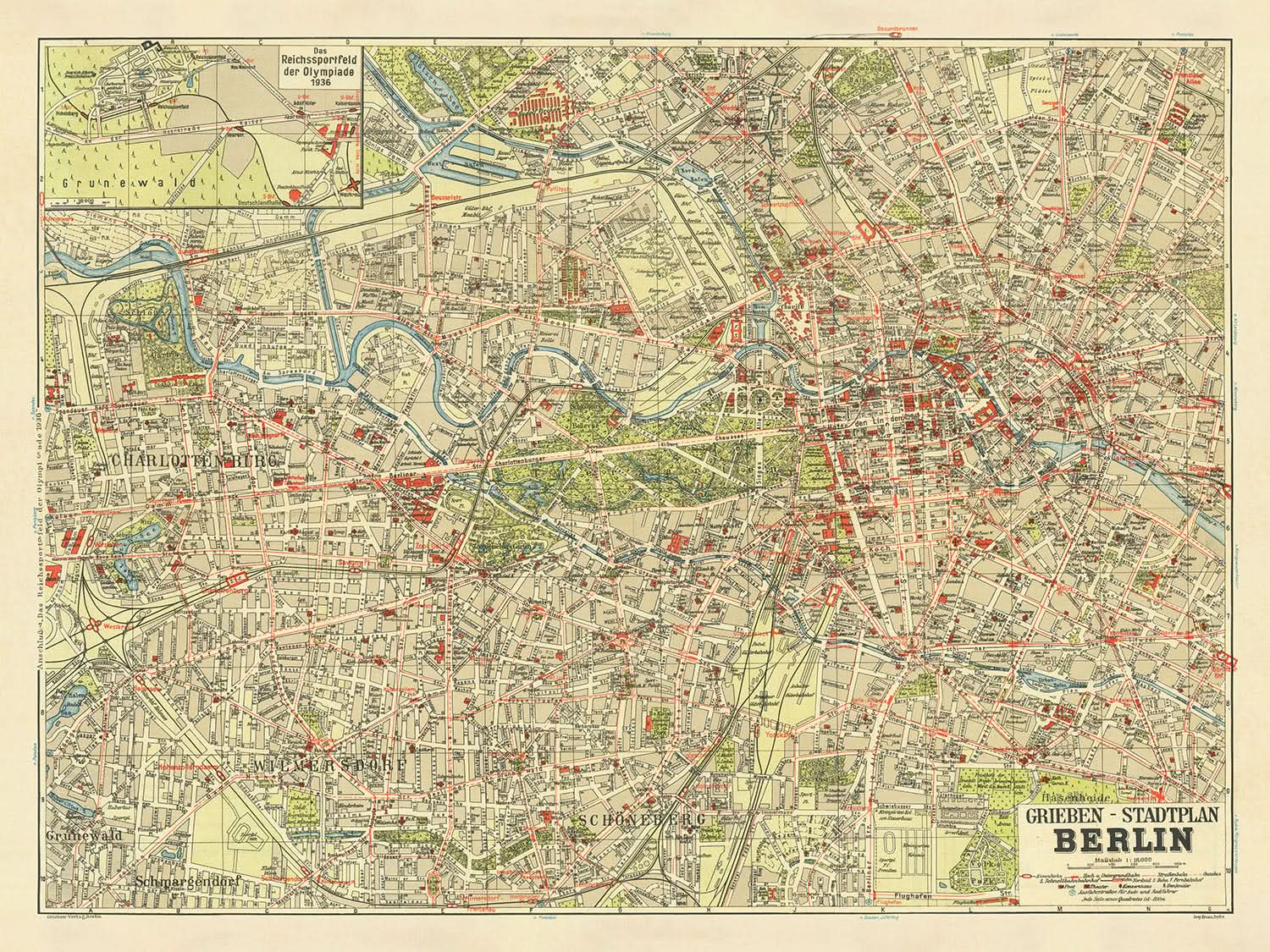 Alte Karte von Berlin von Stilke, 1936: Olympische Spiele, Grunewald, Tiergarten, Kurfürstendamm, Unter den Linden