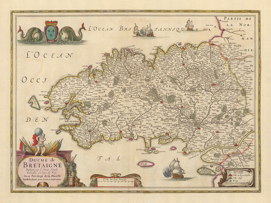 Alte Karte der Bretagne von Nicolaes Visscher, 1690: Rennes, Nantes, Brest, Saint-Malo und Vannes