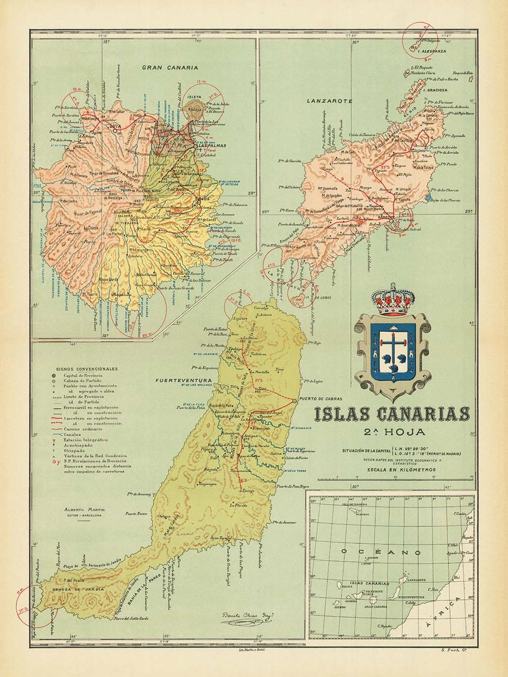 - Historische Bedeutung: Bietet Einblicke in das geografische Verständnis und die politischen Grenzen der Kanarischen Inseln zu Beginn des 20. Jahrhunderts.