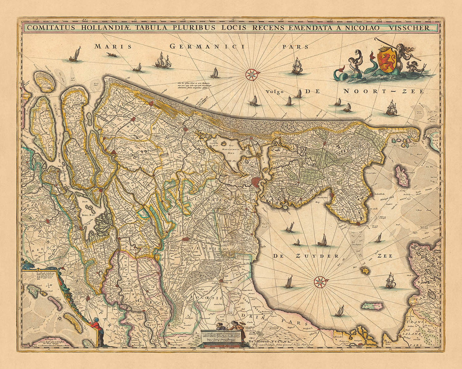 Alte Karte von Holland von Visscher, 1690: Amsterdam, Rotterdam, Den Haag, Utrecht, Leiden