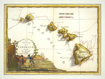 Alte Karte von Hawaii im Jahr 1785 von Giovanni Cassini: Sandwichinseln, Maui, O‘ahu, Honolulu, Pazifischer Ozean