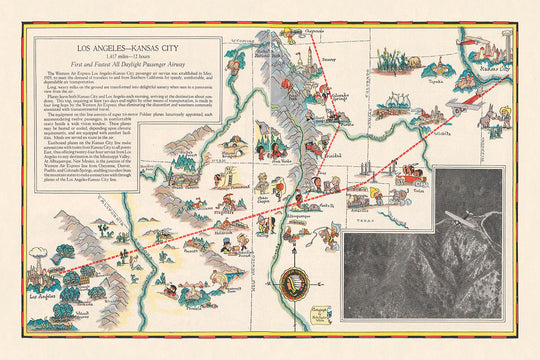 • Name der Karte: Los Angeles-Kansas City, erstellt im Rahmen eines Western Air Express Prospekts.