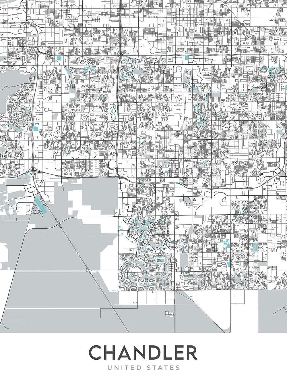 Diese Karte von Chandler, Arizona ist ein Muss für jeden, der Karten, Kunst oder die Stadt Chandler liebt. Es ist ein wunderschönes und informatives Stück, das jedem Zuhause oder Büro einen Hauch von Eleganz verleiht.