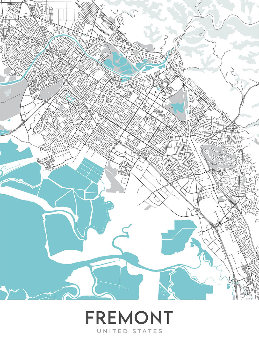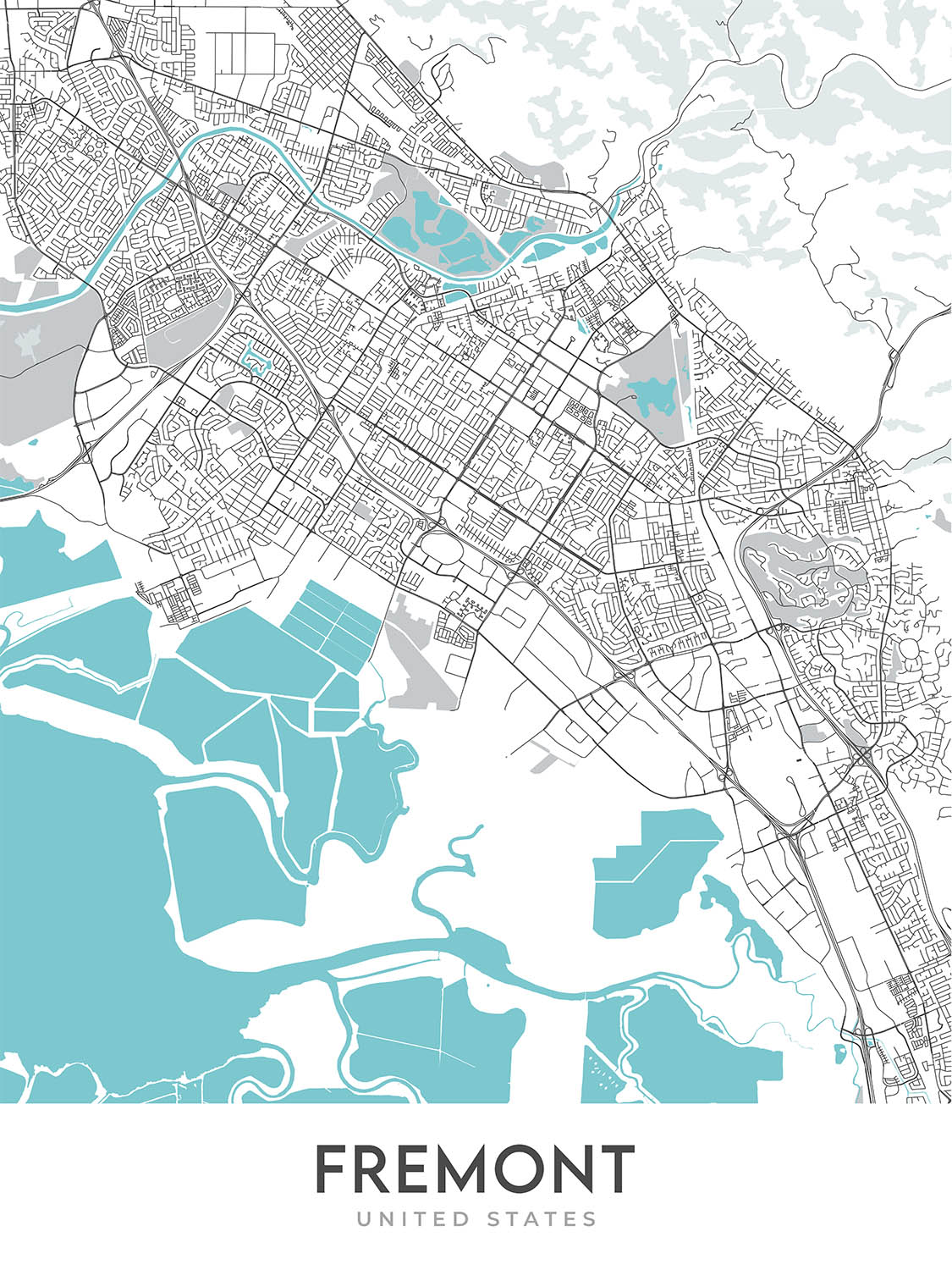 Diese Karte von Fremont, Kalifornien, ist ein modernes Wunderwerk der Kartographie. Es handelt sich um eine detaillierte Straßenkarte, die sich auf die einzigartigen Viertel, Hauptstraßen und Sehenswürdigkeiten der Stadt konzentriert. Die Karte ist mit ihren leuchtenden Farben und den aufwendigen Details eine Augenweide. Es ist sicher ein Gesprächsstarter in jedem Zuhause oder Büro.