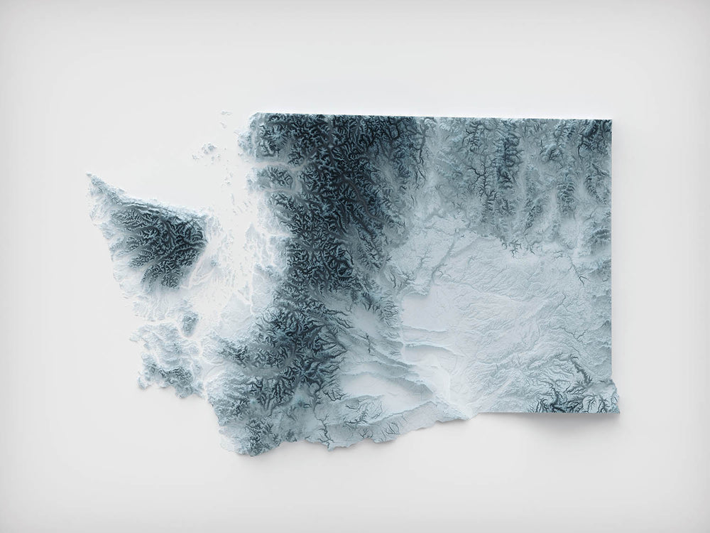 Topografische 3D-Reliefkarte des Bundesstaates Washington