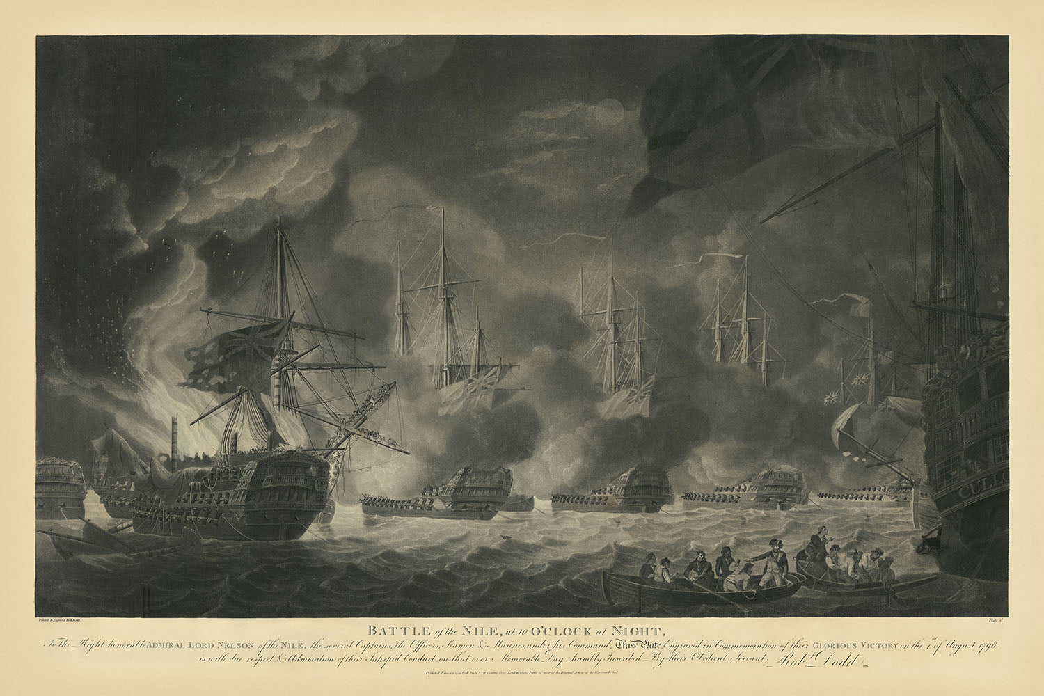 Die Schlacht am Nil von Robert Dodd, 1798: Horatio Nelson gegen die Franzosen