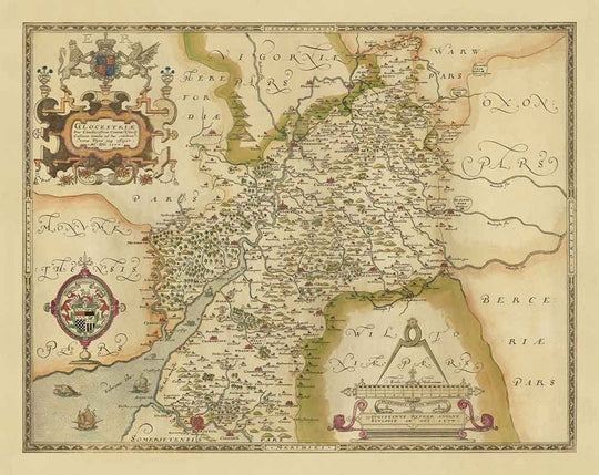 Wenn Sie nach etwas etwas anderem suchen, wäre eine weitere Option diese erstaunliche Karte desselben Gebiets von John Speed aus dem Jahr 1611: https://www.etsy.com/uk/listing/895454680/old-map-of-gloucestershire-1611-john