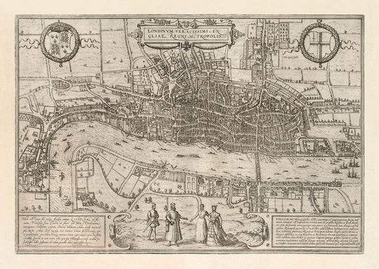 Sehr alte Karte von London, 1572 von Georg Braun: Stadt London, Westminster, Southwark
