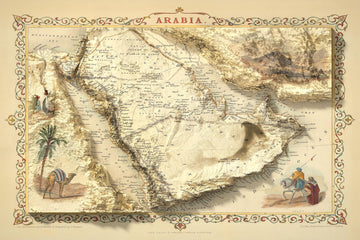 Graviert von John Rapkin und veröffentlicht von J. Tallis & Co im Jahr 1851, ist dies eine der besten und detailliertesten historischen Karten der Arabischen Halbinsel, oder einfach "Arabien", wie es damals bekannt war.