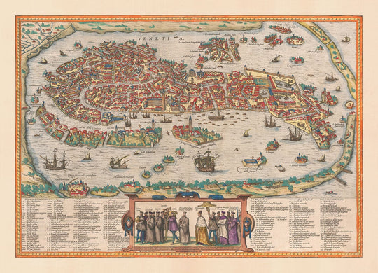 Sehr alte Karte von Venedig, 1572 von Georg Braun: Venedig, Murano, Burano, Giudecca, Venezianische Lagune