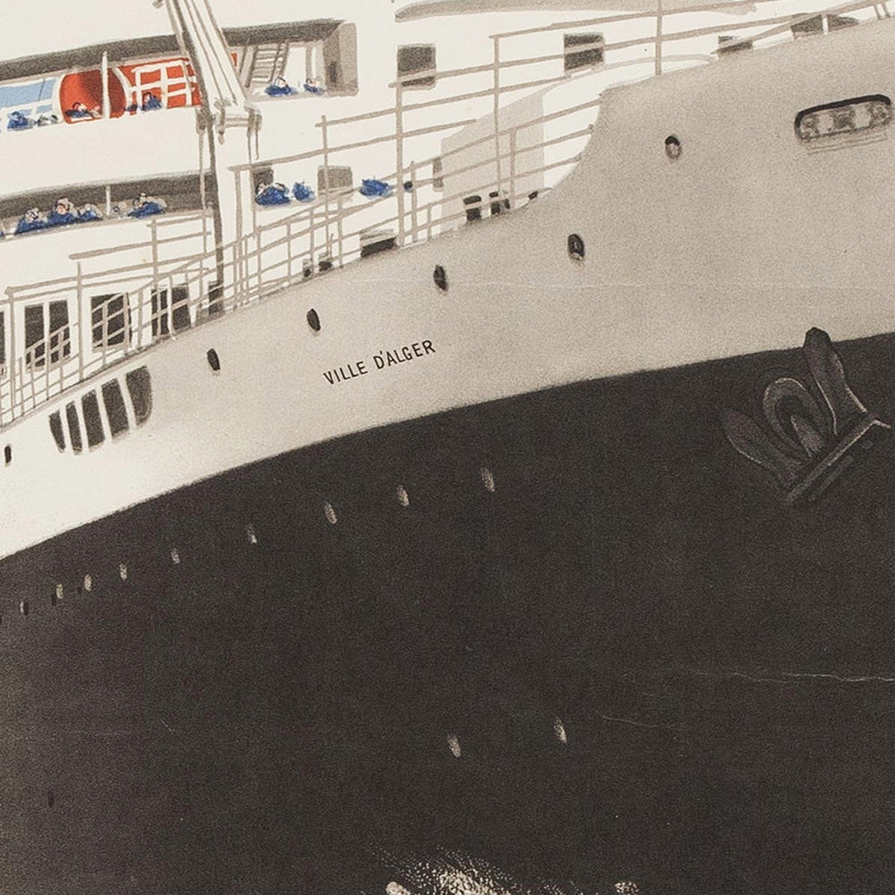 About the makers: the French Line (Compagnie Générale Transatlantique) was France’s storied steamship company—famed for its elegant liners and impeccable service—while PLM (Paris–Lyon–Méditerranée) was the railway that connected Paris with the southeast and the Mediterranean. Together they cultivated a sophisticated visual identity through posters like this one, commissioning talented designers to symbolize modern travel with bold geometry, streamlined forms, and impeccable typography. Even when the artist’s name is lost to history, the house style is unmistakably French and impeccably Art Deco.