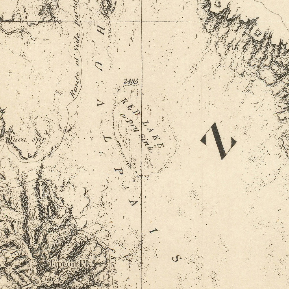 Equally compelling is the map’s ethnographic and cultural intelligence. The Hualapai Valley is prominently labelled, and notations identify local Indigenous tribes whose homelands, trails, and water sources shaped every mile of movement. References to Hualapai, Mojave, Havasupai, and Southern Paiute territories acknowledge an inhabited and expertly understood landscape long before federal surveys arrived. Trails align with Indigenous pathways; camps nestle at known springs along the Colorado and its tributaries. Military waypoints such as Camp Mohave and the crossing at The Needles speak to a frontier where diplomacy, protection of travel corridors, and resource access intertwined—a reminder that cartography here was as much about people and power as about peaks and rivers.