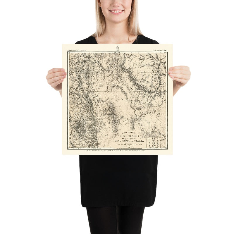 Old Survey Map of Grand Canyon by Wheeler, 1878: Black Cyn., Virgin R., Camp Mohave, Needles, Colorado R.