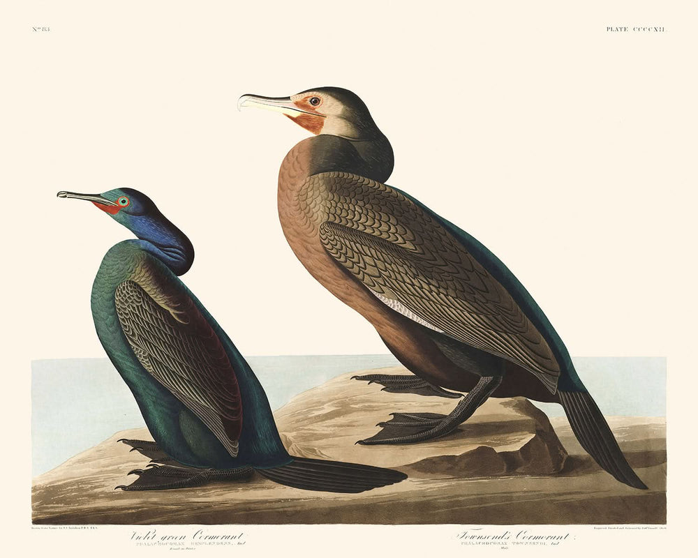 Violettgrüner Kormoran und Townsends Kormoran von John James Audubon, 1827