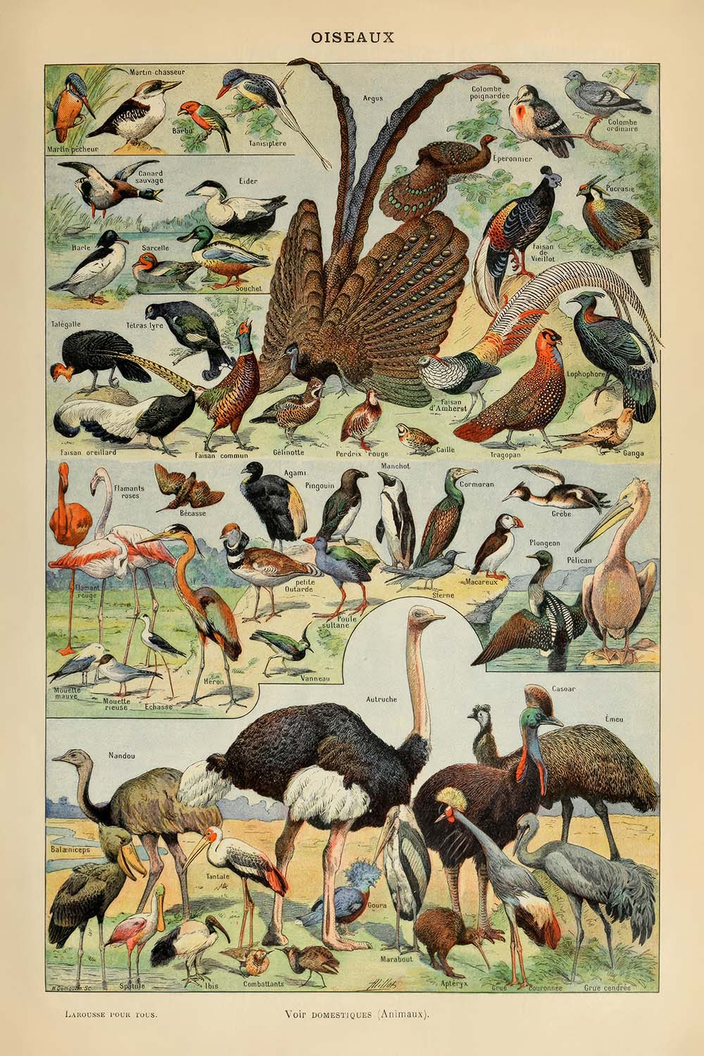 Birds (1) by Adolphe Millot, 1890 - Fowl, Flamingo, Seabirds, Flightless Birds