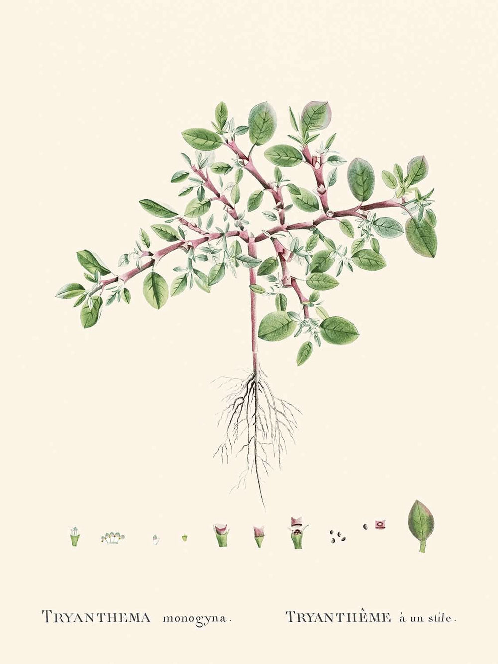 La verdolaga del desierto, originalmente titulada Trianthema Monogyna, se publicó por primera vez en 1802. Esta exquisita ilustración botánica victoriana es obra de Pierre-Joseph Redouté, uno de los ilustradores botánicos más célebres de la historia. Nacido en Bélgica, Redouté alcanzó un éxito artístico temprano como tutor de pintura de María Antonieta. Más tarde, a petición de Josefina Bonaparte, la esposa del general Napoleón, dedicó gran parte de su vida a pintar las flores del castillo de Malmaison. Su compromiso con el arte botánico lo llevó a lograr una prolífica producción de más de 2100 pinturas botánicas, que documentan más de 1800 especies diferentes.
