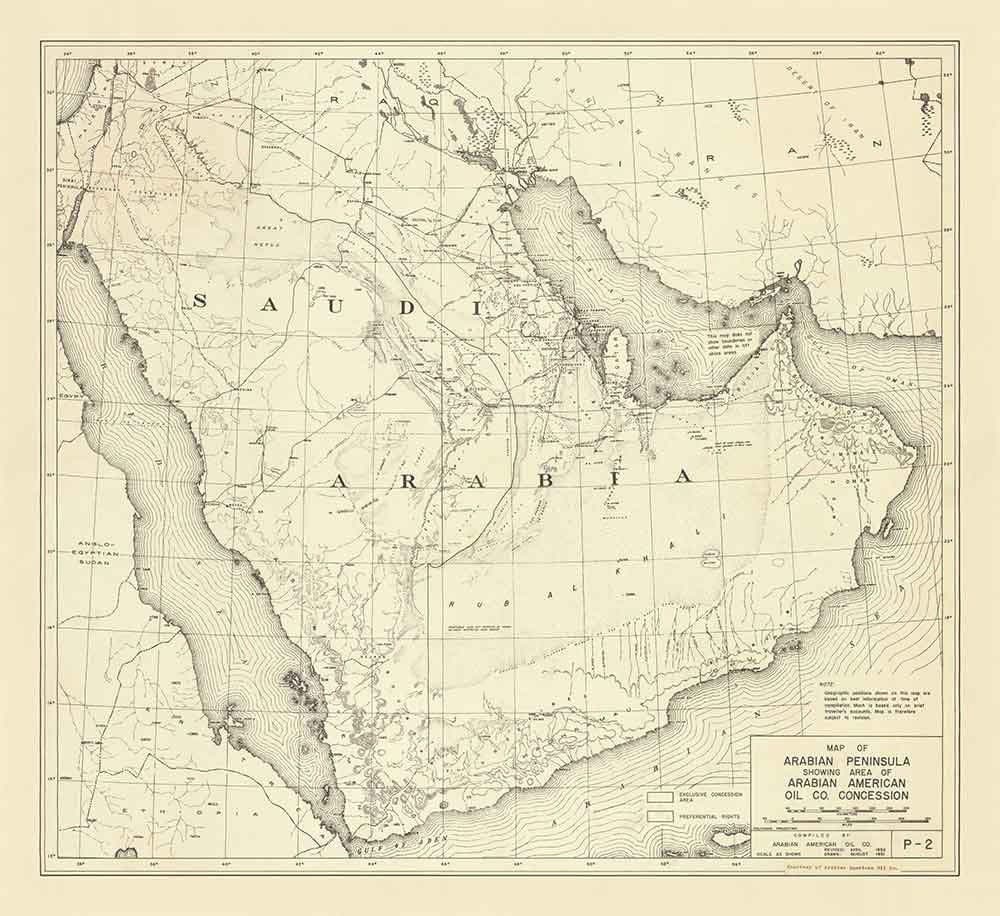 Antiguo mapa de Aramco, 1953: Primer mapa de la Arabian American Oil Company