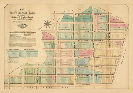 Este mapa cubre lo que ahora se conoce como SoHo (o al sur de Houston). Pero, si eso no era lo suficientemente interesante, el mapa también muestra las tierras agrícolas sobre las que se construyó SoHo.Es un poco difícil de creer hoy en día, pero a principios del siglo XIX la mayor parte de Manhattan todavía era tierras agrícolas. Aquí, el mapa muestra que SoHo solía ser West Bayard Farm, la propiedad de Nicholas & Stephen Bayard.
