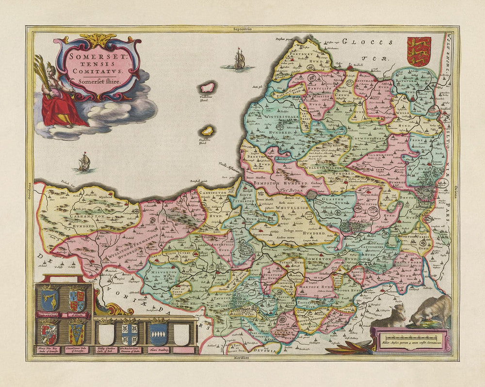 Algunos de los pueblos, aldeas y lugares claramente visibles en este antiguo mapa del condado de Somerset incluyen: Bath, Portishead, Bristol, Weston-super-Mare, Taunton, Yeovil, Frome, Bridgwater, Clevedon, Glastonbury, Chard, Longleat, Wells y muchos más. Pero, por supuesto, muchos de ellos están escritos en sus formas de inglés moderno temprano.